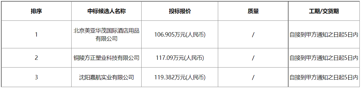 空港食品分公司2022年可降解塑料制品采购-中标候选人公示