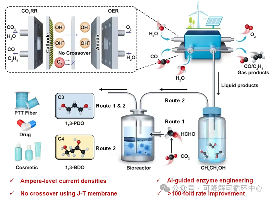 CO2变身高价值C3+二醇:电化学-生物合成新突破