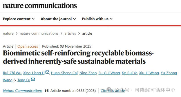 总而言之,这项研究通过模仿生物系统的自我增强机制,成功开发出一种性能优异、可持续且可循环再生的生物基聚酯材料。该材料在紫外线、湿热和电场环境下展现出卓越的耐久性和自我增强能力,同时实现了从回收到升级再造的闭环循环。这一突破为设计下一代可持续材料开辟了广阔的前景,有望推动材料科学向更加环保和可持续的方向快速发展。