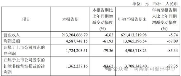 2025年前三季度营收约6.21亿元,同比减少5.74%;归属于上市公司股东的净利润约491万元,同比减少85.34%。
