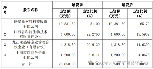 从股权结构看,增资前联泓新科持有科院生物51%的股权,增资后联泓新科的持股比例升至65.70%。本次增资后,科院生物注册资本将增至2.95亿元。