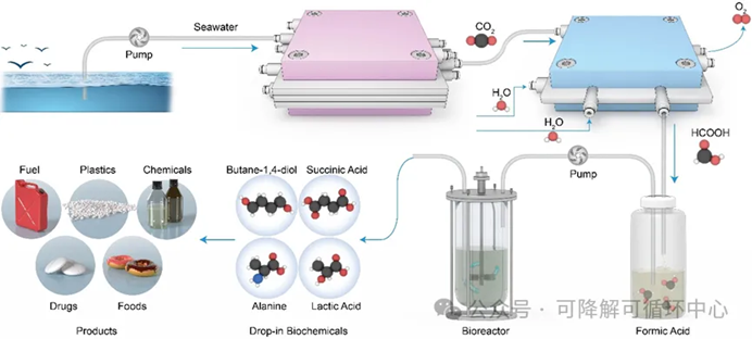 该项研究提出的“人工海洋碳循环系统”,构建了一个从“海水吸碳”到“材料与分子产出”的完整链条,采用“电催化+合成生物学”协同方案,首次打通了海水碳捕集与下游生物转化的关键环节,以可降解塑料单体为示范,形成可扩展的平台路径,为跨学科融合提供了新范例。