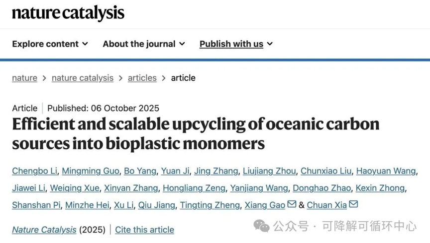 10月6日,中国科学院深圳先进技术研究院定量合成生物学全国重点实验室、合成生物学研究所高翔团队联合电子科技大学夏川团队,首次提出并验证了一种基于“电催化+生物催化”耦合策略的“人工海洋碳循环系统”,相关成果发表在国际学术期刊《自然·催化》。该系统可捕集天然海水中的CO₂,并转化为可直接进入生物制造的中间体,再进一步升级为多类高价值化学品与材料。该研究以可降解塑料单体为示范案例,有望为燃料、医药与食品配料等更广谱产品提供生物制造平台。