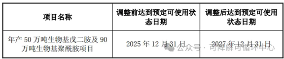 2023年8月7日,公司对募投项目“年产50万吨生物基戊二胺及90万吨生物基聚酰胺项目”达到预定可使用状态的时间进行延期。