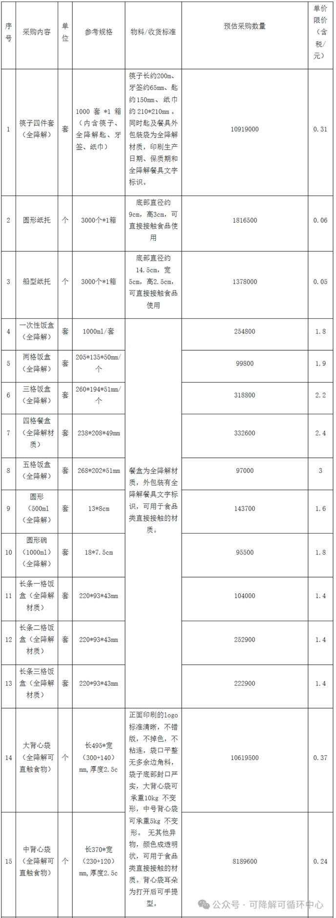 10月10日,南联2025年集中采购全降解餐具类和包装袋采购项目招标公告发布。