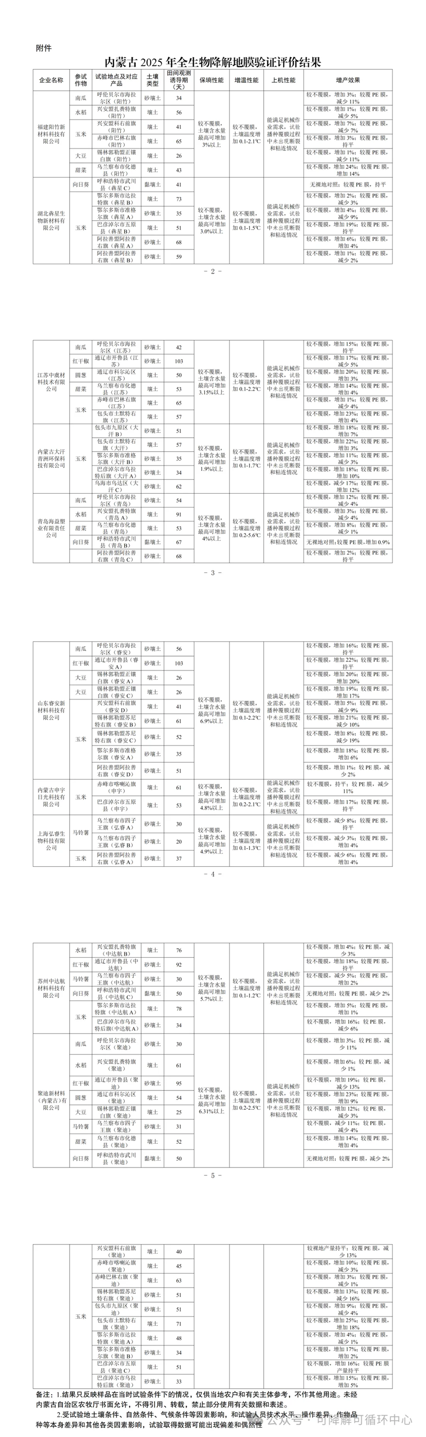 1月27日,内蒙古自治区农牧厅发布于2025年内蒙古全生物降解地膜验证评价结果。