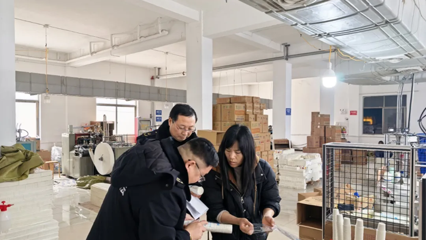 此次检查,以面向国内市场生产销售一次性纸杯的企业为重点对象,重点排查原材料安全、生产过程控制、产品标识标注等关键环节。执法人员实地检查了企业是否具备工业产品生产许可证,查看了企业生产车间、存储区、实验室的卫生环境以及生产设备、工艺流程,详细查阅了企业销售台账、原料进货检验台账、不合格品处理记录,并核查线上销售是否存在不可降解纸杯冒充可降解纸杯的情况。在检查过程中,执法人员及时指出企业生产中的不规范行为,责令其立即整改;同时,现场指导帮助企业完善生产经营管理,督促企业在“硬件”配置与“软件”管理两方面均要严格符合工业产品生产许可证相关规定,切实保障产品质量安全。
