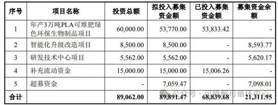 公司表示,变更募投项目的原因为:受益于下游客户需求增长,公司现有可降解塑料制品产能不足。为扩大生产规模,提高公司可降解塑料制品产能,解决公司现有产能瓶颈问题,发挥规模效应,提升公司市场竞争力,将公司绿色可降解制品生产主业做大做强。