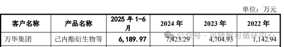 2022-2025年聚仁新材对万华集团销售情况