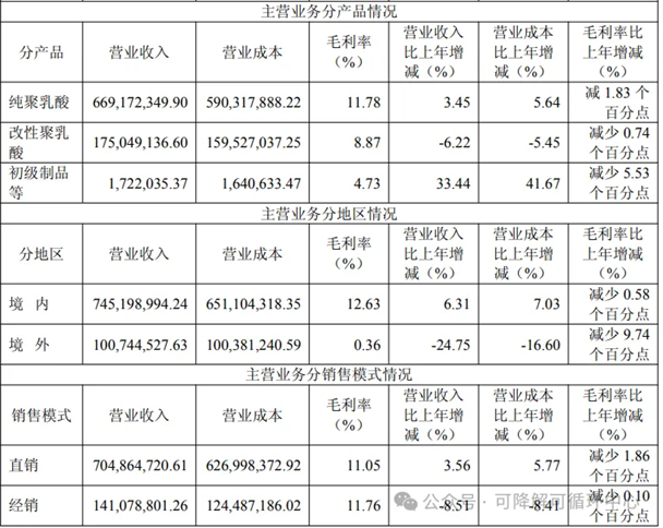2025年,纯聚乳酸营业收入6.69亿元,同比增长3.45%;毛利率为11.78%,同比减少1.83%。改性聚乳酸营业收入1.75亿元,同比下降6.22%,毛利率为8.87%,同比减少0.74%。